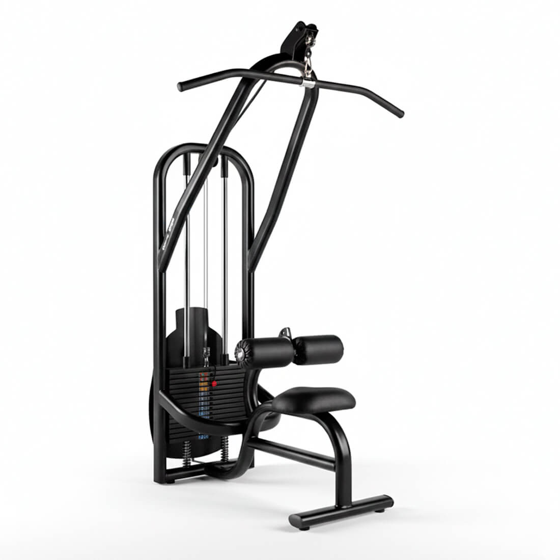 Carter de protección trasero. Cintas de tracción de poliuretano de 16 mm. x 2,2 mm. con 10 filamentos de acero en su interior de alta resistencia, carga a la rotura a la tracción superior 8.000 Newton totalmente ocultas. Asiento ergonómico. Tornillería cincada con tuercas anti desbloqueantes de alta seguridad. Polea Alta KD01 con tapizados son de espuma inyectada de poliuretano expansible de rápida recuperación con forma anatómica y recubierta con material de alta resistencia en vinilo /polyester, resistencia a la abrasión 100.000 ciclos. Tapizados Ignífugos y antibacterianos. Carga frontal de fácil accesibilidad. Las placas de selección están provistas de casquillos de poliestireno inyectado para facilitar el deslizamiento y valona para evitar el impacto.